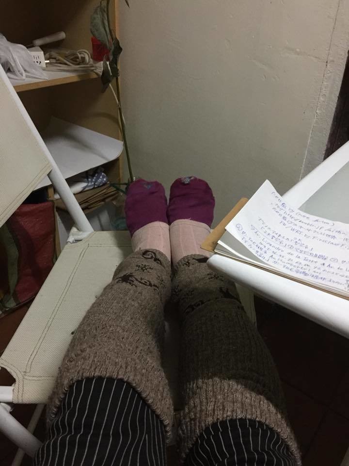 日本の冬でもこんなにもたくさん着たことないが足も首も兎に角身につける。