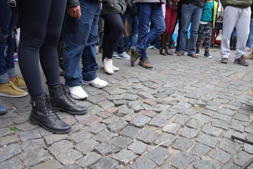 犬の糞に気をつけて、事故に巻き込まれないように気をつけて、上から何かが落ちてくるから気をつけて、”下を見て左右見て上を見て歩こう”。