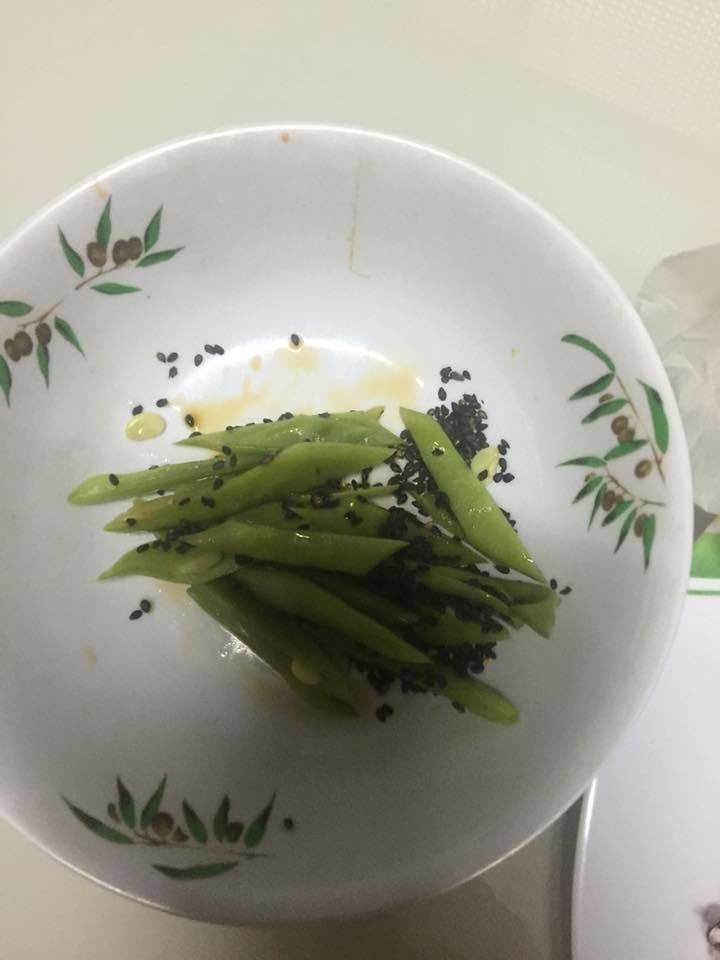 家に持ち帰ってナスの味噌炒めといんげんの胡麻和えをスパのトマトソースの残りの中に入れる。